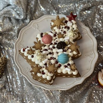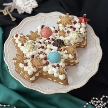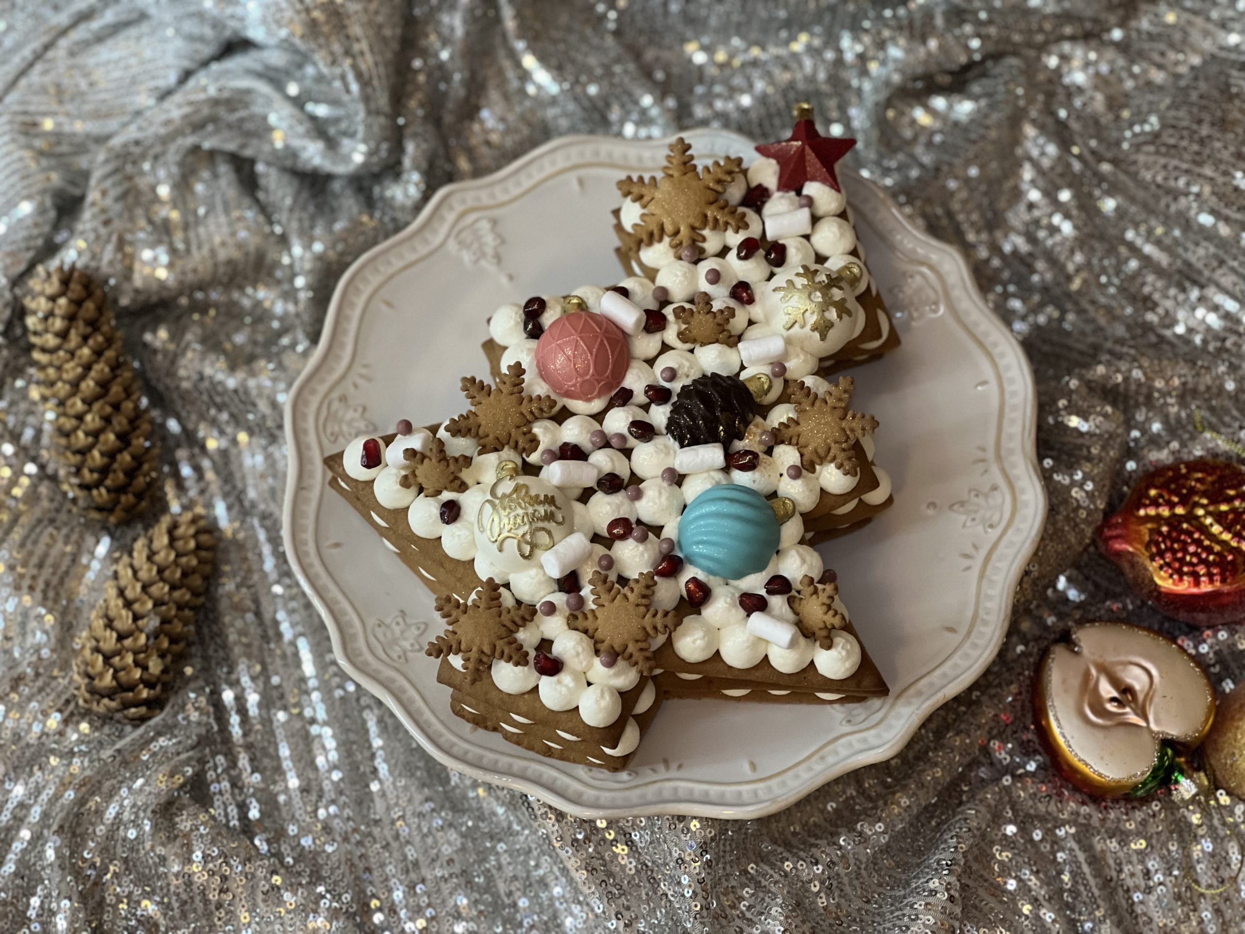 Но это еще не все! Чтобы придать торту «Ёлочка» сладкую нотку особенности, мы добавили маршмеллоу, зерна сочного граната и рисовые шарики в малиновом шоколаде. Каждый представленный элемент вносит свой вклад в создание роскошного и оригинального образа, который точно станет украшением любого праздничного стола.